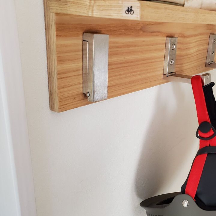 玄関脇には棚もフックも欲しかったので、このようなプチリメイクを施してみました。