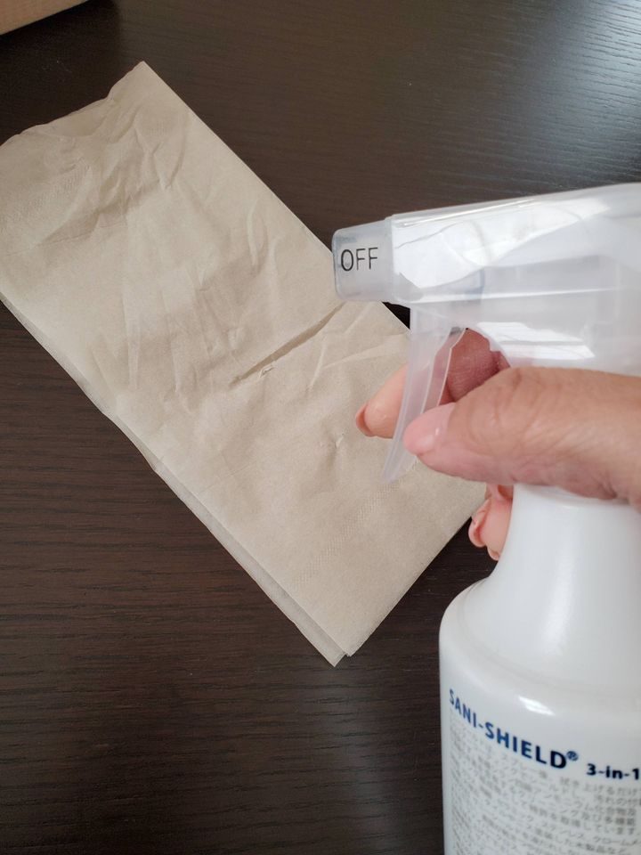 いままでアルコールスプレーをかけてウエットティッシュで拭いていましたが