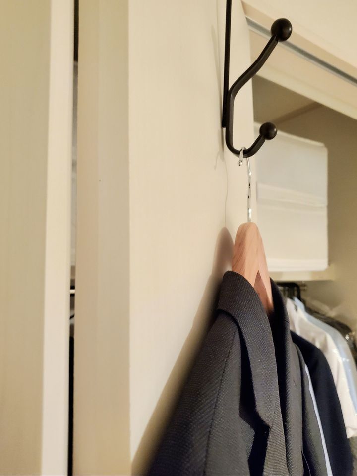 ちなみに二着掛けてもドア(壁)に当たりません。
