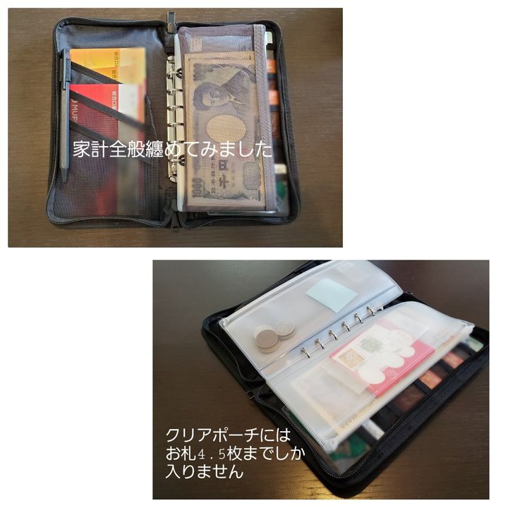 クリアポーチにはお札数枚がギリギリ入るイメージです。