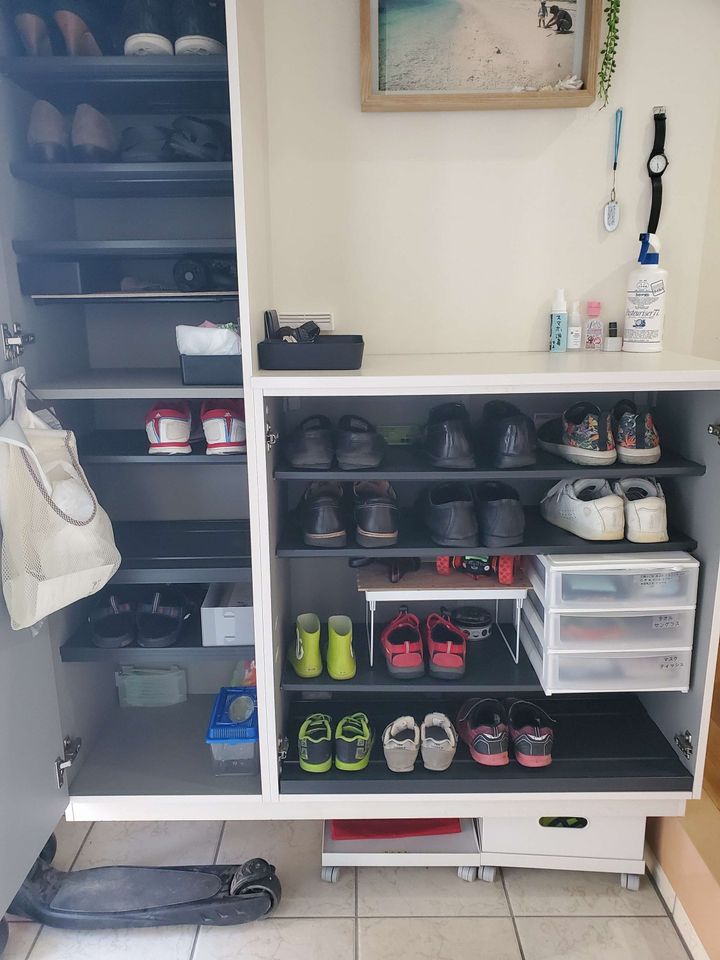 時々しか出番のない靴は鏡扉つきの左側に納めています