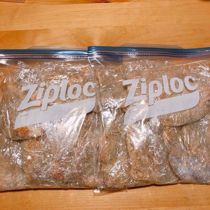 この日の晩ごはん分として5枚を使用したので残りの20枚は2枚ずつラップをしてジップロックに入れて冷凍庫で約2ヶ月以内には食べきるようにしています。揚げるときは解凍せずそのまま油で揚げます。