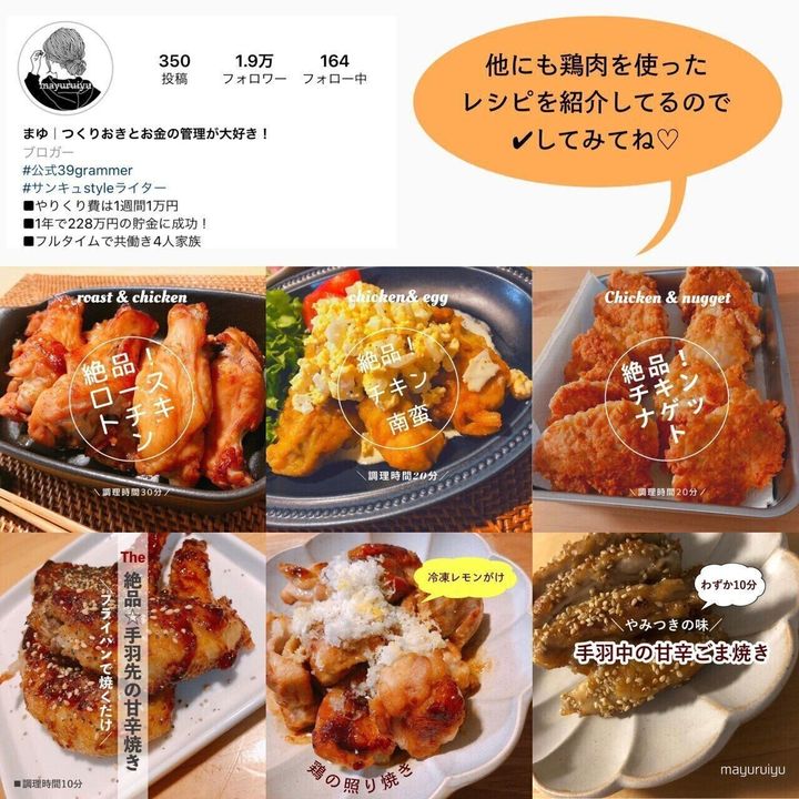 Instagramでは他にも鶏肉を使った時短レシピや下味冷凍レシピなどを紹介してます