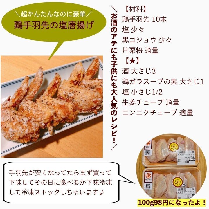 今回は鶏手羽先を使った超かんたんな塩唐揚げのレシピをご紹介させて頂きます。