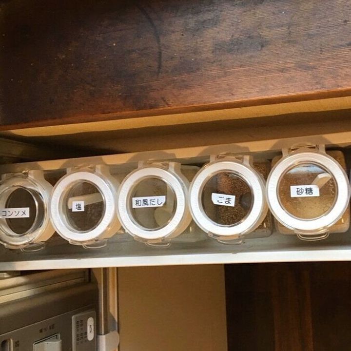 コンロ横の頻度が高い調味料はこの容器に移し替えて収納しています。