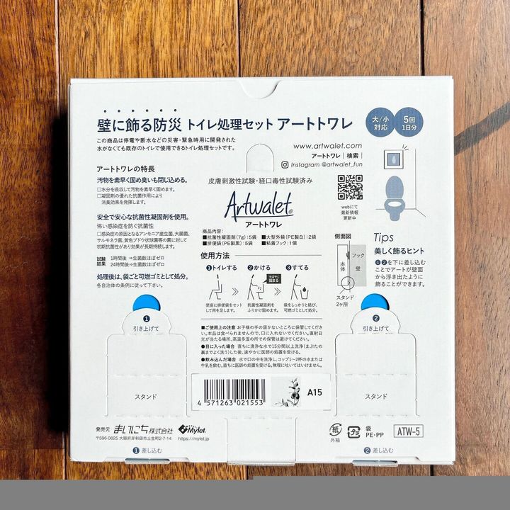 このアートなトイレは防災メーカーが作った製品なので、使用する時も安心で安全。凝固剤も皮膚刺激性試験などの様々な試験を行い、安全性を確認しています。長期10年保存ができ、優れた抗菌、消臭性もあります。