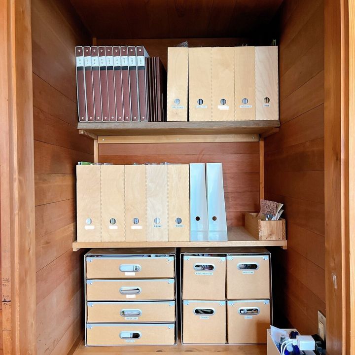 「なるべくリビングに持ち込まない」と言っても、子どもが小さかったり、買い物袋いっぱい抱えて帰宅する時は、そうもいかないのが現状。そんな時は、書類などのちょい置きスペースを作りましょう。我が家では、私用と夫用の書類のちょい置きスペースを作っています。ここに溜まってきたら時間を見つけて仕分けをするように。夫にも時々声かけをして「書類、ここに入れているよー」とアピールします。