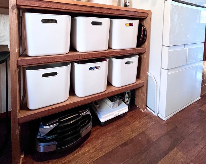 収納用品の形を揃えて綺麗に並べるだけで統一感が出て、垢抜けて見えます。買い足ししやすい収納用品を選ぶのもコツです。限定品などは避けて、定番の収納用品を選びましょう。