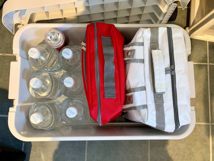 使用したのは、無印良品の頑丈収納ボックス大。たっぷりな収納力で、アウトドアや防災グッズを収納するのにおすすめです。