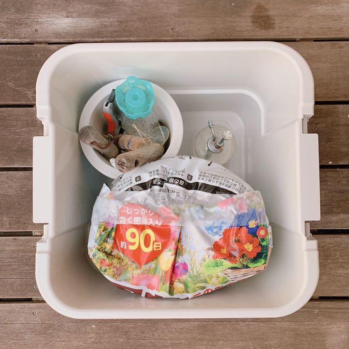 小サイズでも大容量で、我が家では、ベランダのガーデニンググッズも余裕で収納できます。