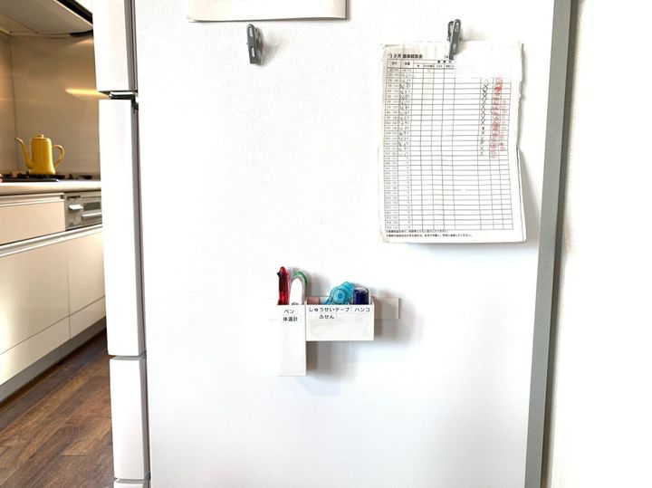 コロナ禍の前は、体温計は薬箱の中に収納していましたが、現在は冷蔵庫に貼り付けて出しっぱなしにしています。
