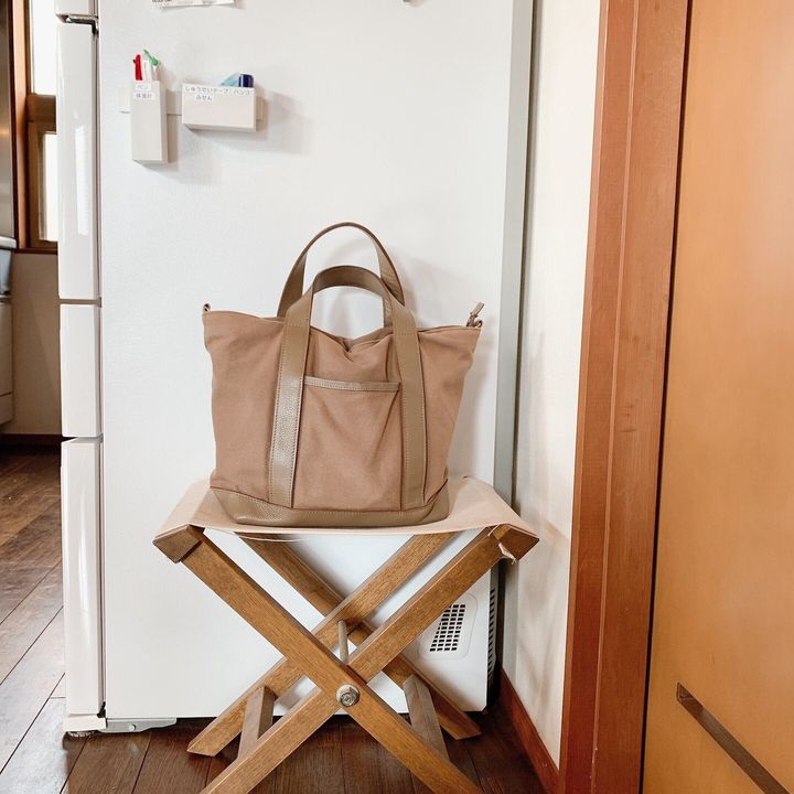 私は家にいる間、ダイニングテーブル付近にいることが多いので、毎日使うバッグもダイニングテーブル近くの冷蔵庫の脇に置いています。