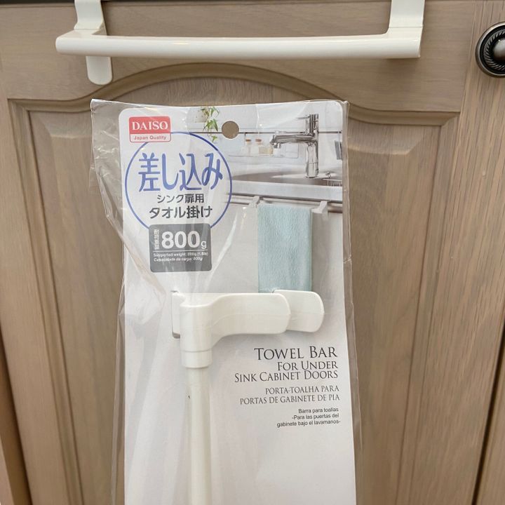 ダイソーのタオルハンガーをキッチンで使っています。6年使って壊れてしまったので、また同じタイプのものを買いました。