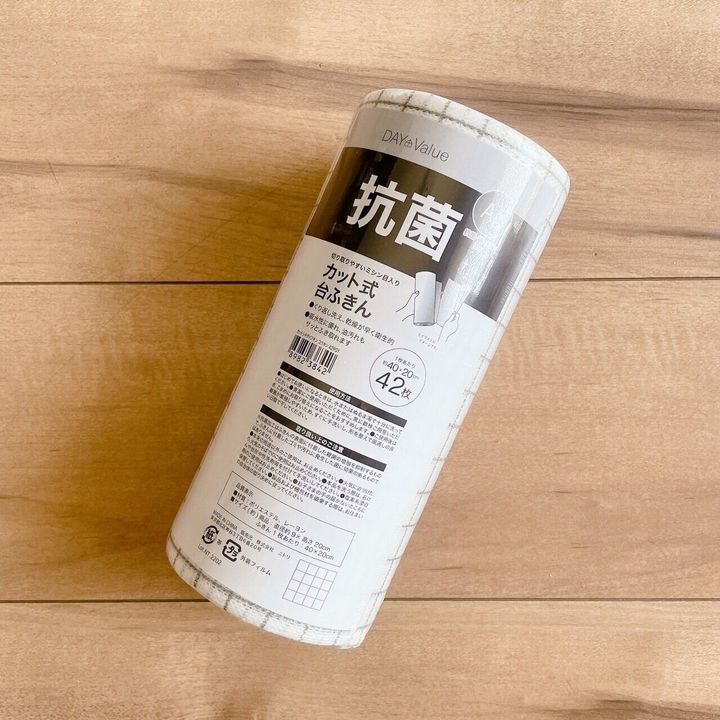「カット式台ふきん」(税込279円)はロールタイプのふきんです。42枚入りなので1枚6.6円とコスパ大なところも魅力的ですね。