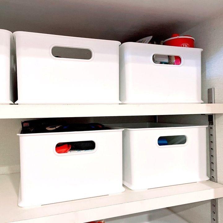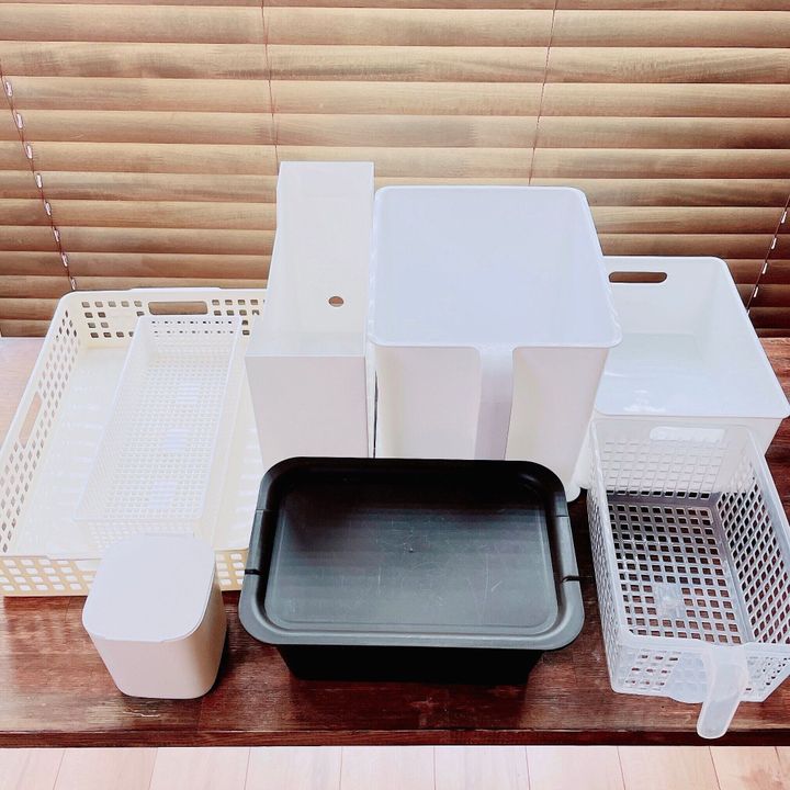 収納グッズを買う時には、最初に、収納グッズに何を入れたいのかを決めると、どのような大きさの収納グッズを購入したらよいのか、何個買ったらよいのか見えてきます。「何を入れるか」決めてから収納グッズを購入してくださいね。