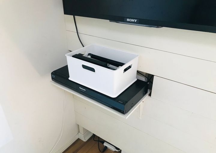 すぐに取り出し、すぐに片づけられるように、ビデオデッキの上にボックスを置いています。