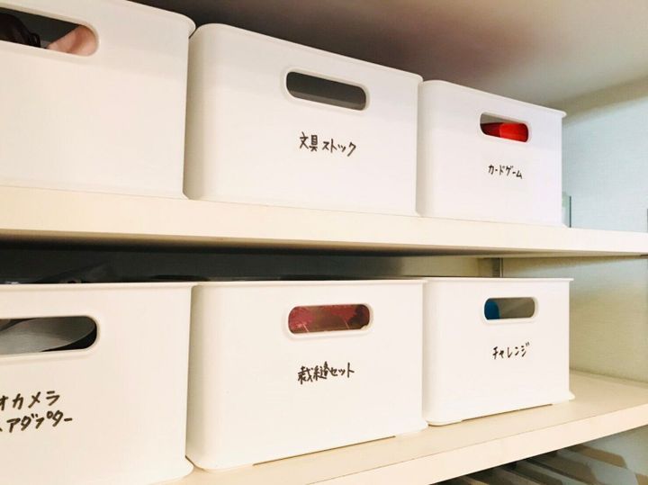 見た目がキレイであることも大事ですが、家族全員が一目で分かることも大切!ラベリングや、中身が見える透明のボックスなどで収納の工夫してみてくださいね。