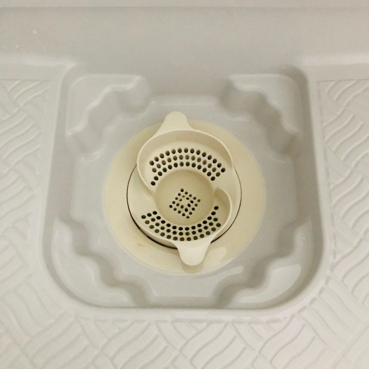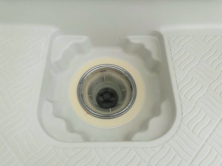 排水口のフタをしていると汚れが見えないので、「浴室の見た目」より「汚れの見える化」を優先して排水溝のフタを手放したのが数年前のことです。しかし、もともとついていたゴミ受けがプラスチック製だったため、掃除を怠るとすぐにぬめりやカビが発生!結局、掃除に時間と労力をかけてしまうことが多かったので、100均の流し台・排水口揚のゴミ取りネットに替えました。