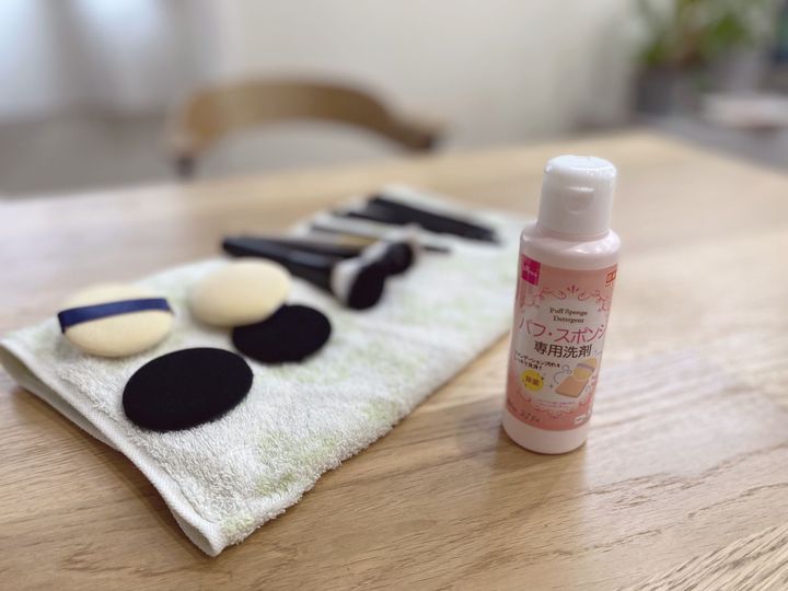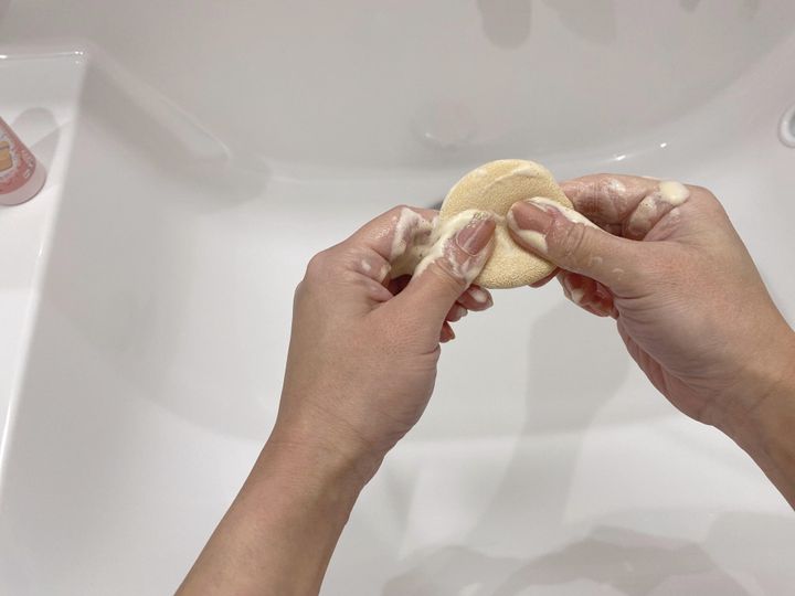気をつけるポイントとしては、パフ・スポンジをゴシゴシ揉み込んで洗うと素材を傷めてしまうので、そうならないようにやさしく指先で押さえるように洗うこと。