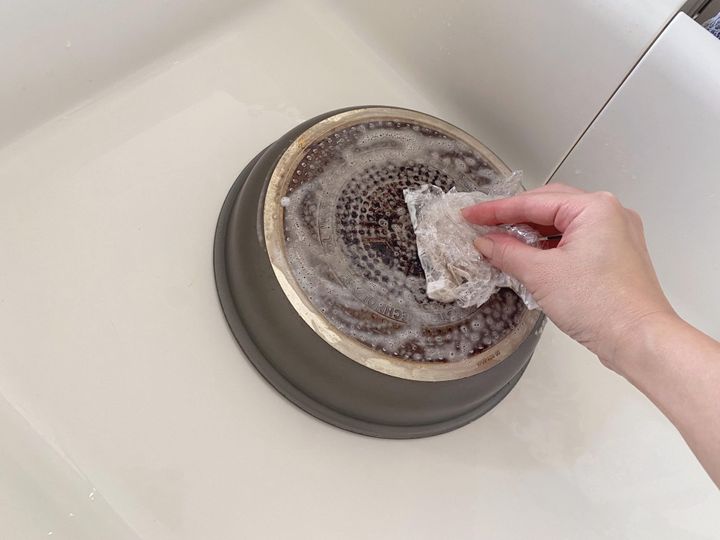 使い込んでいるフライパンの裏側は、ついつい頑固汚れになってしまっています。
