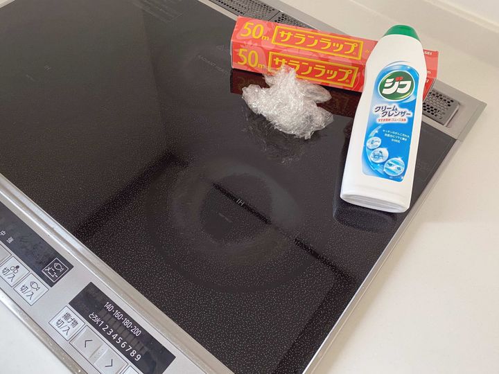 IHヒーターの上に大きなドーナツ形のモヤモヤが現れるのですが、それは焦げ付き汚れなのでジフを使って洗浄します。
