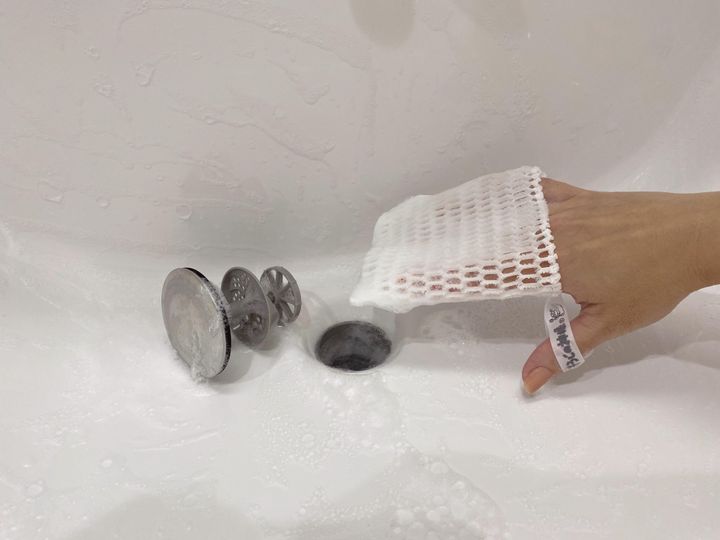 洗面所の排水口のゴミを捨てやすくするための、スポンジのような素材でできた商品です。