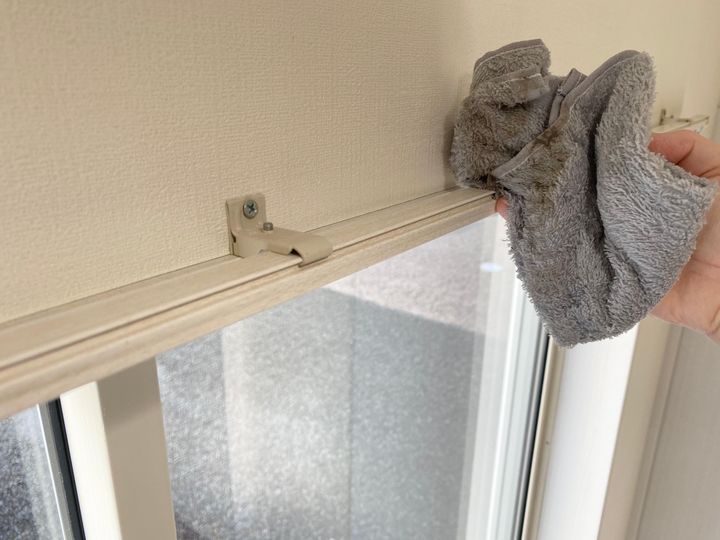 カーテンレールの拭き掃除もしておくと、気持ちよくカーテンを取り付けられますね。