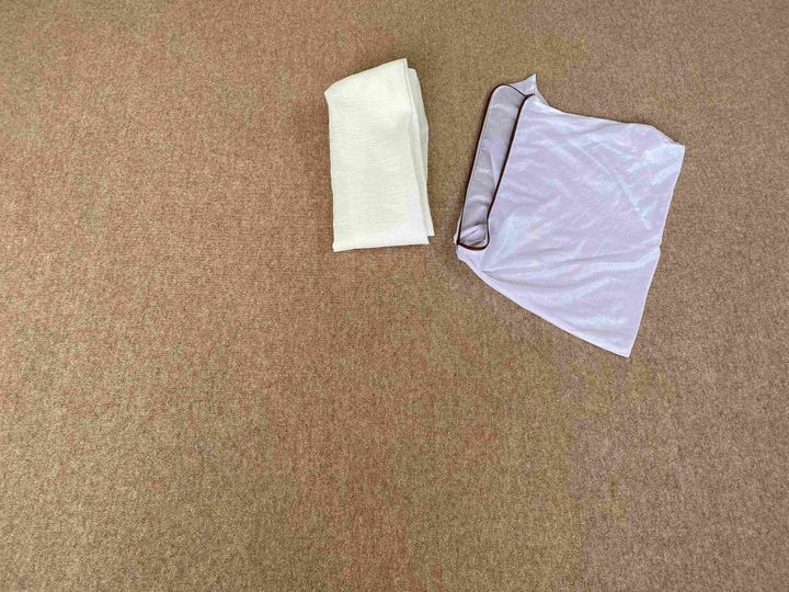 カーテンの汚れがあるようなら、汚れている部分が表に出るように畳みます。