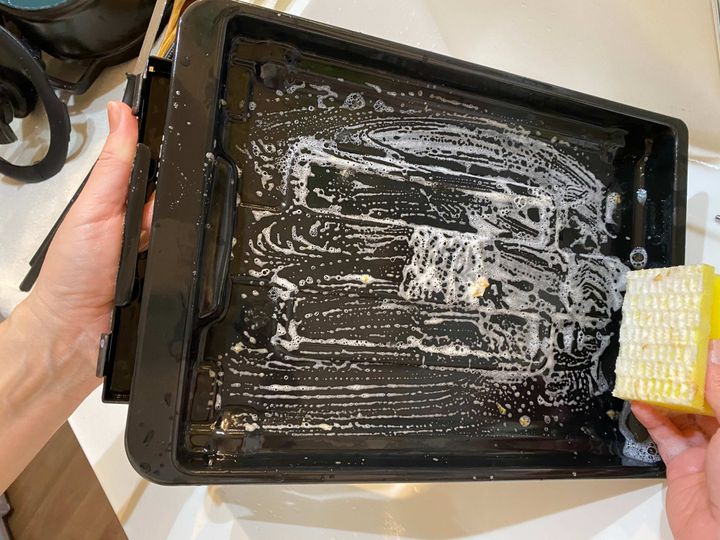 グリルのヒーターを切ってすぐは熱いですが、冷めたことを確認したら取り外してすぐにシンクに置きます。
