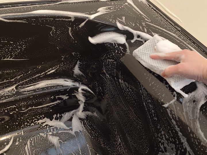我が家のお風呂の浴槽は黒色で水垢がよく目立ち、しっかり掃除をしないと汚く見えてしまうのですが、「買い間違えてしまった」しっかり硬めのスポンジは、その硬さのおかげて浴槽や壁をしっかり洗うことができる、とても頼もしいアイテムでした。
