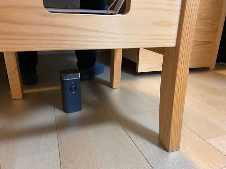 元々は段差が3cmしかない玄関への落下防止に「バーチャルウォールモード」で使用していましたが、仕事や勉強中は椅子の足元に「ヘイローモード」で設置することによって、仕事中に足にぶつかってくることなく、快適に。