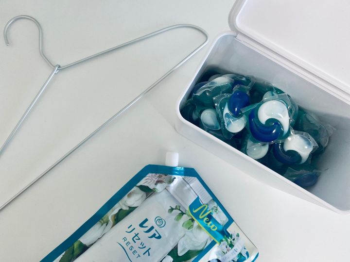 まず、衣類はアイロン不要な素材をセレクト。そして、洗濯洗剤は計量不要なジェルボールタイプに変更し、柔軟剤も衣類ケアと皺防止機能のある製品に切り替え。さらに、収納法も見直して乾いたらハンガーにかけたまま戻すだけのスタイルに。畳みシワの問題からも解放されました。