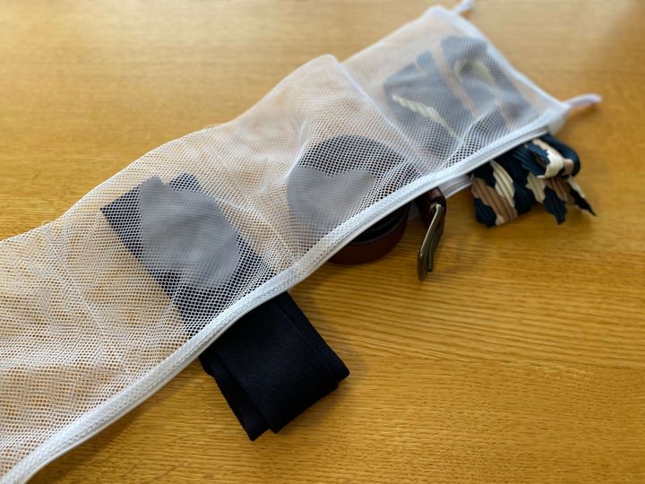 第一に通気性が良く、透けるため中身の確認がしやすい点。そして、使わない時にはコンパクトにストックしておける上に、洗濯できるので綺麗をキープしやすい所。