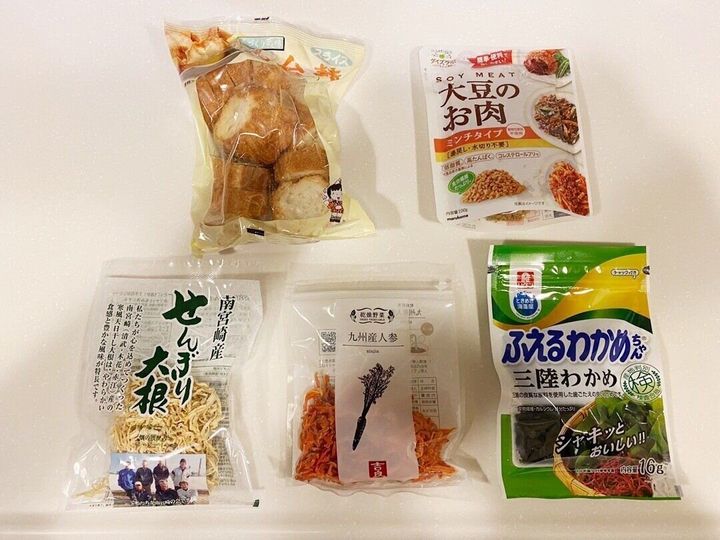 調理が必要ですが、乾物や麩そしてソイミートなど。