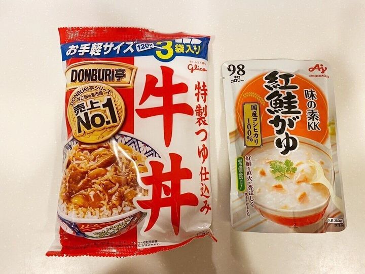 定番どころでは、調理が不要なカレーやお粥などのレトルトパウチ。