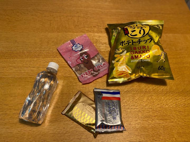 常温保存可能かつ温め不要であれば構いませんので、お好きな食品と飲み物を乗車時に持ち込むようになさってください。