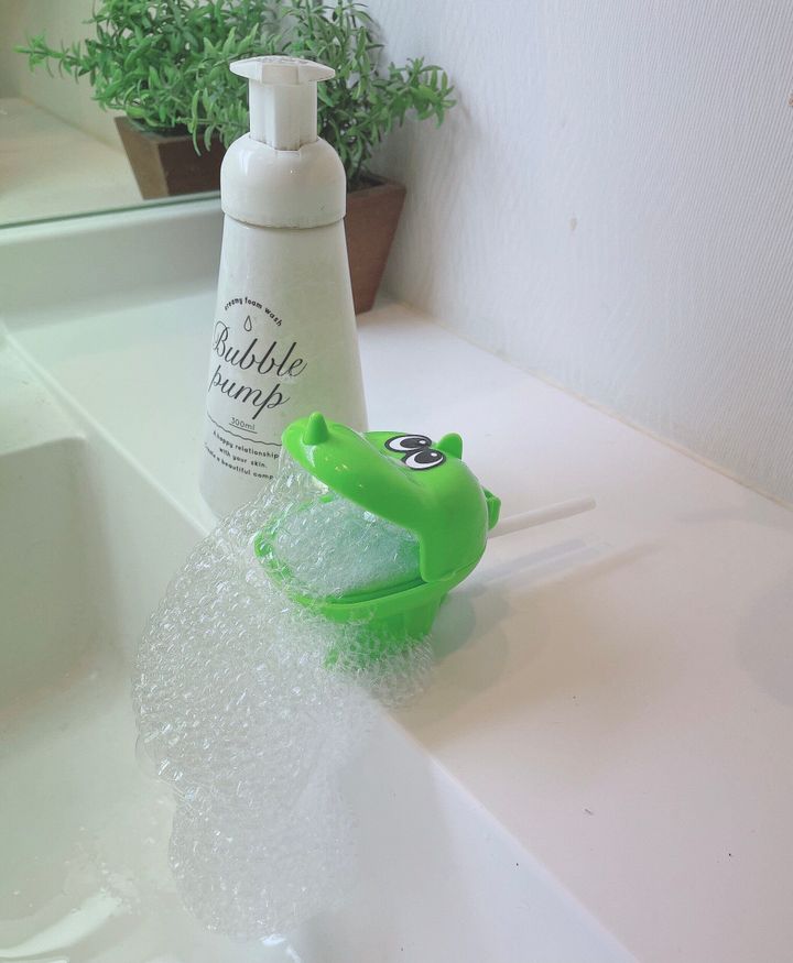 恐竜からぶくぶくと、滝のように泡が出ています!