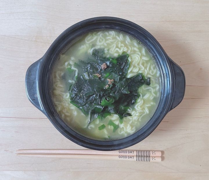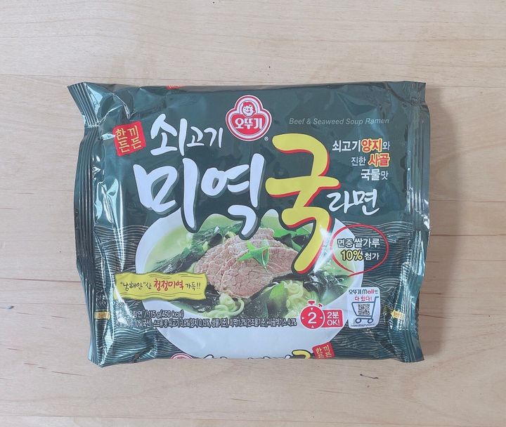 パッケージに大きく書いてある「미역국(ミヨックク)」というのがわかめスープのことです。韓国では誕生日にわかめスープを食べる習慣があります。韓国のお母さんたちは子供を出産したあと、体力回復や母乳への栄養を考えてわかめスープを毎日食べます。なので誕生日にわかめスープを食べるということは、産んでくれた母親への感謝を忘れないためという意味があります。