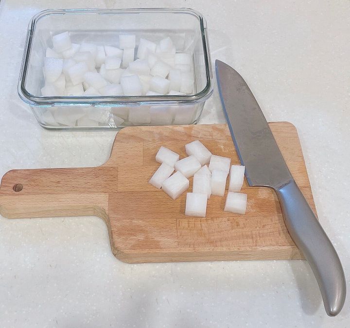 1:大根は2㎝角に切り密閉容器に入れます。瓶などでも大丈夫です。