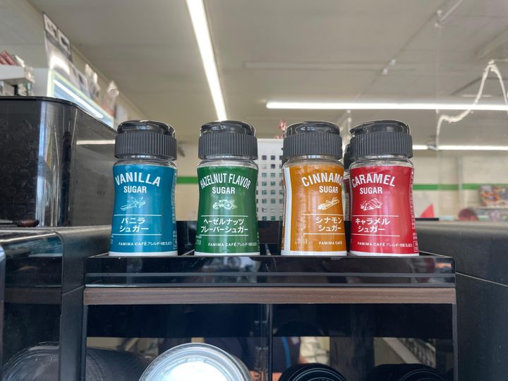 ファミマのコーヒーマシンには、フレーバーシュガーが用意されているので