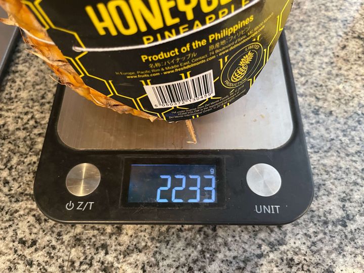 こちらの2kg超えのパイナップル、お値段は498円でした。