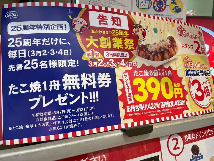 3月は銀だこ創業祭ということで、お得なキャンペーンが続々続きます。