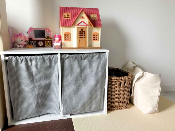 【裁縫道具いらず】リビングのおもちゃを隠す手作りのれんが優秀