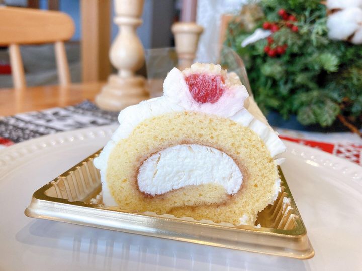 見た目からしてクリスマスのこの時期にぴったりのロールケーキです。