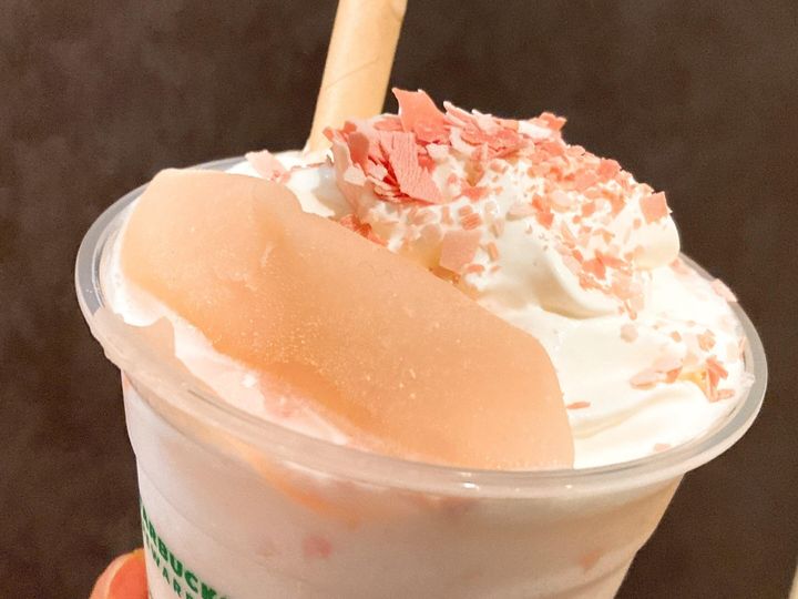上にはピンクの八つ橋がトッピングされているのでいつもに増してデザート感の強いフラペチーノです。