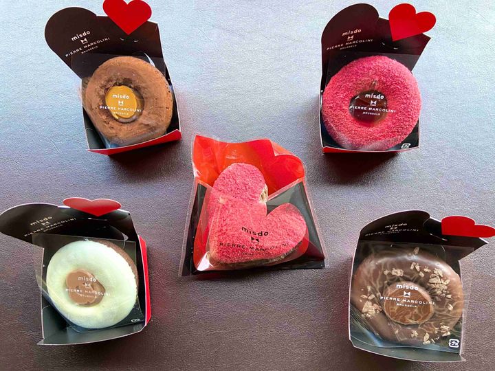 写真の5種+白いハート型の「デニッシュショコラ ヘーゼルナッツ」の全6種の販売です。
