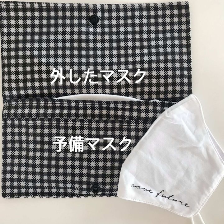 中にはポケットが2つあるので、外したマスクと予備マスクを分けて収納する事ができます。