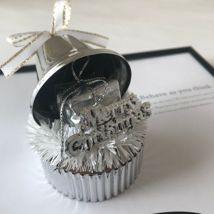 ベルの中にプレゼントのオブジェ&メリークリスマスのプレート