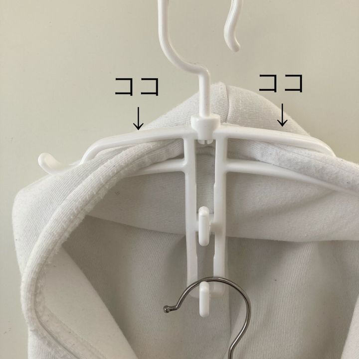 フード部分を浮かせて干すことが出来るのでパーカーハンガーのお陰で断然乾きやすくなります。