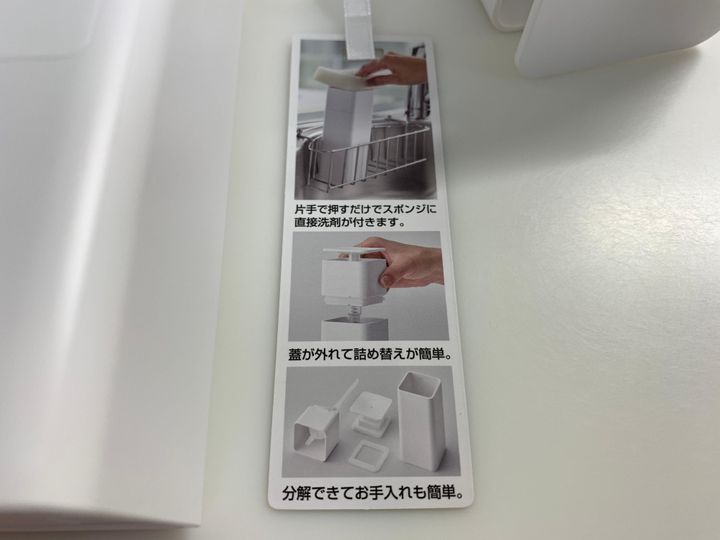 これだと、お皿やコップを手に持ちながらスポンジに洗剤を足せます。